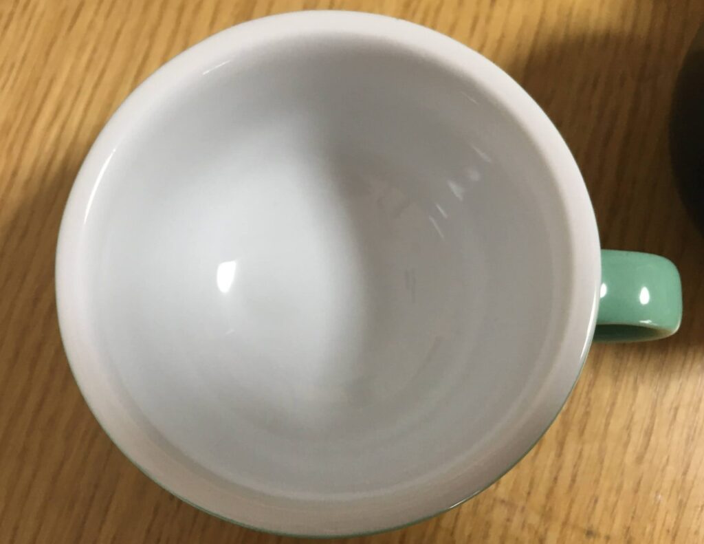 このカップの厚みはカップが重たくなるデメリットがある反面、ラテをそれ以上冷めにくくするための構造なのです。
