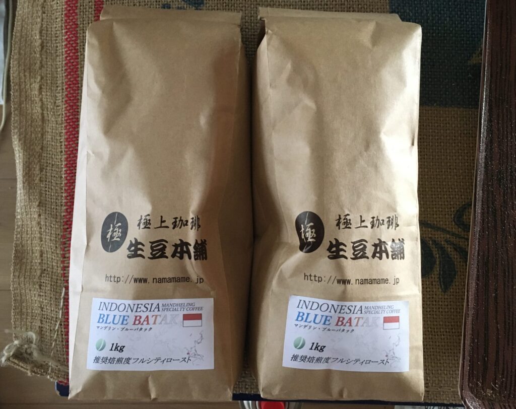 • 左側:生豆本舗・「マンデリン ブルーバタック」