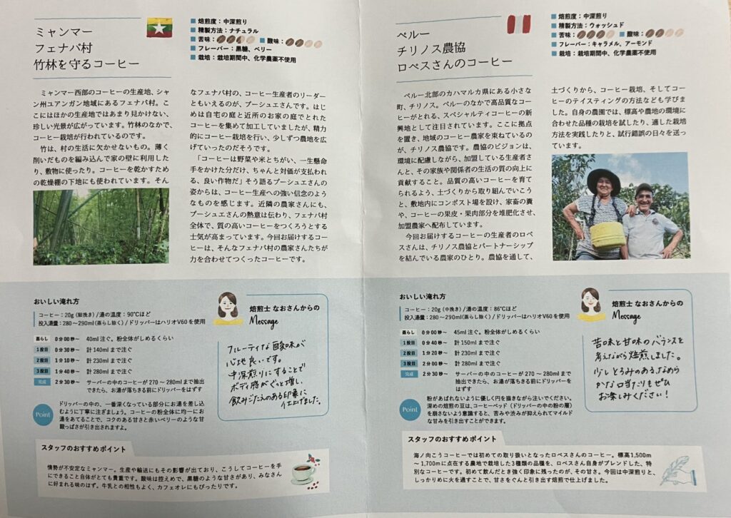 令和7年4月のコーヒー定期便の内容は次のとおりです。