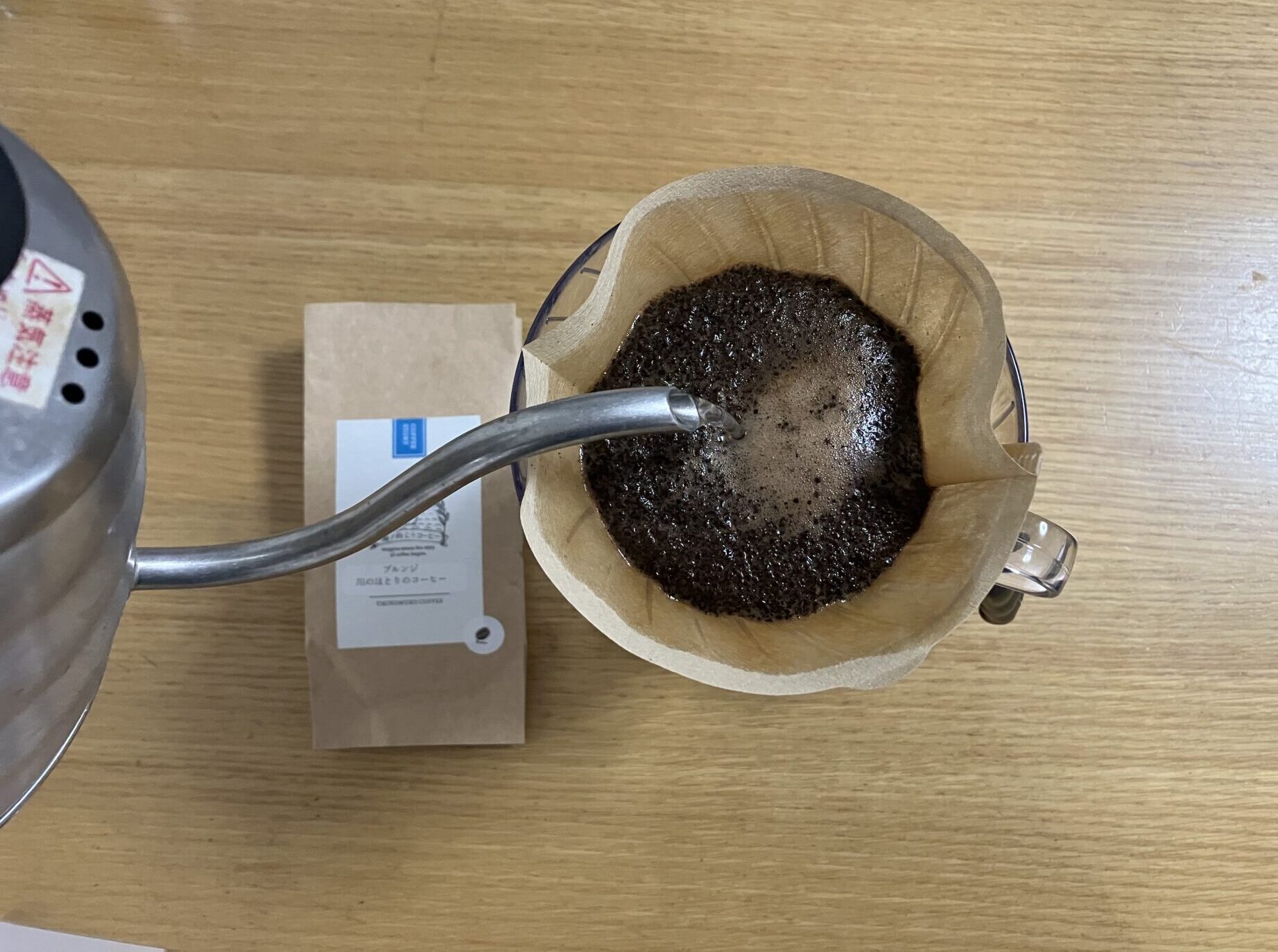 やや深煎りなものの、開封した瞬間に爽やかでやや柑橘系を連想させられる香りが「ふわっと」広がりました。