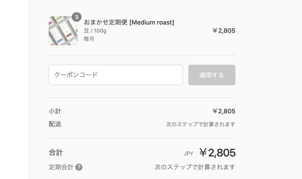 テイラードカフェの定期便は、申し込んだ段階でサブスクリプションサービス(毎月の定期便サービス)に申し込んだことになっています。