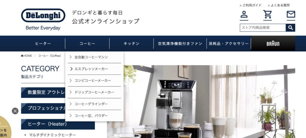 または、デロンギ公式オンラインストアでも販売をされているので、amazonと並行してチェックしてみてください。