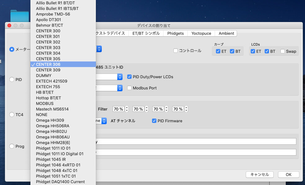 焙煎データロガーソフト(artisan)の設定方法(Mac版)