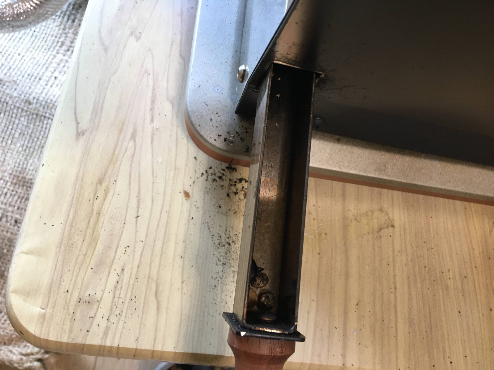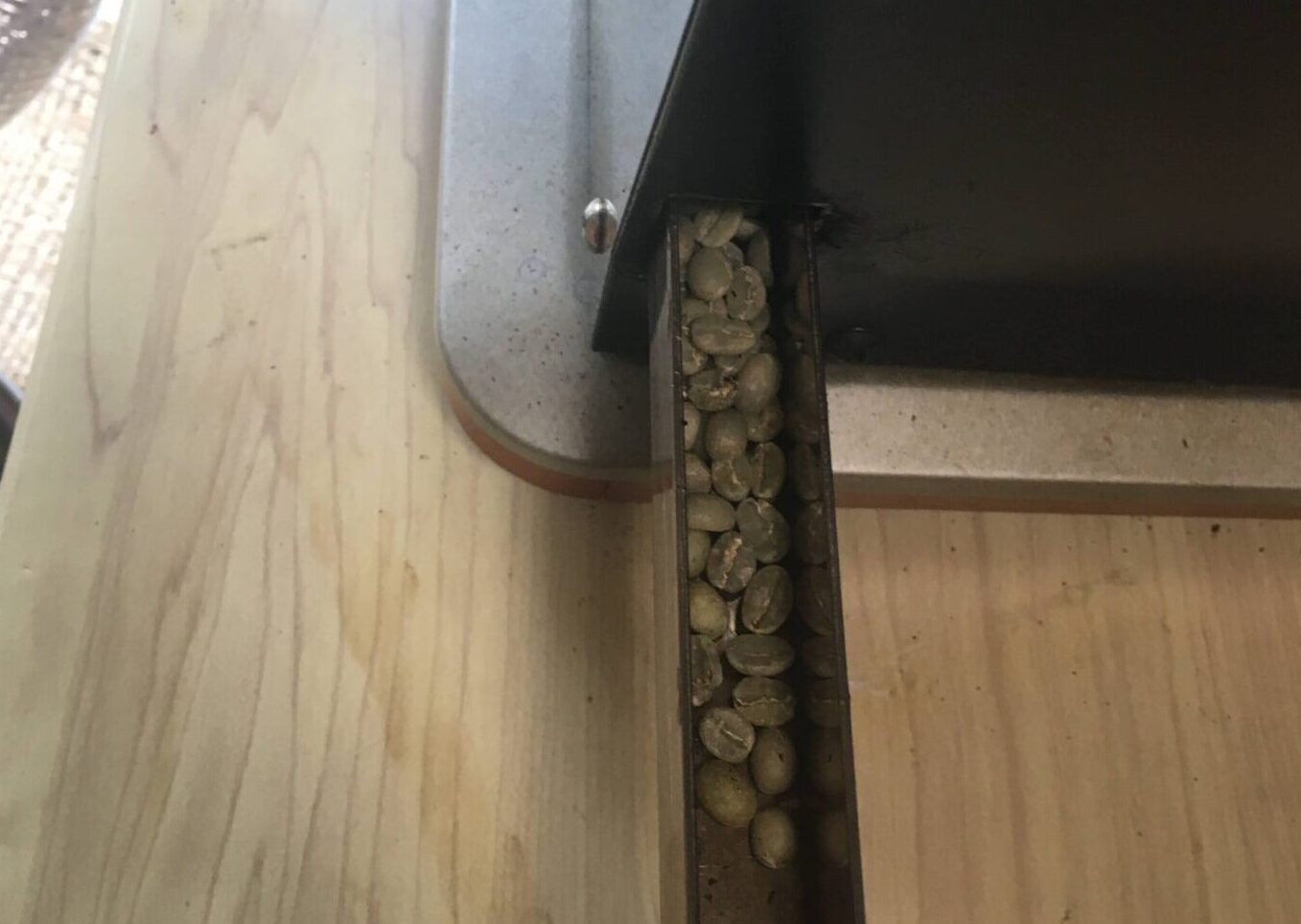 この隙間が広いと生豆が落下するので、わたしは生豆が入らない程度で調節しました。
