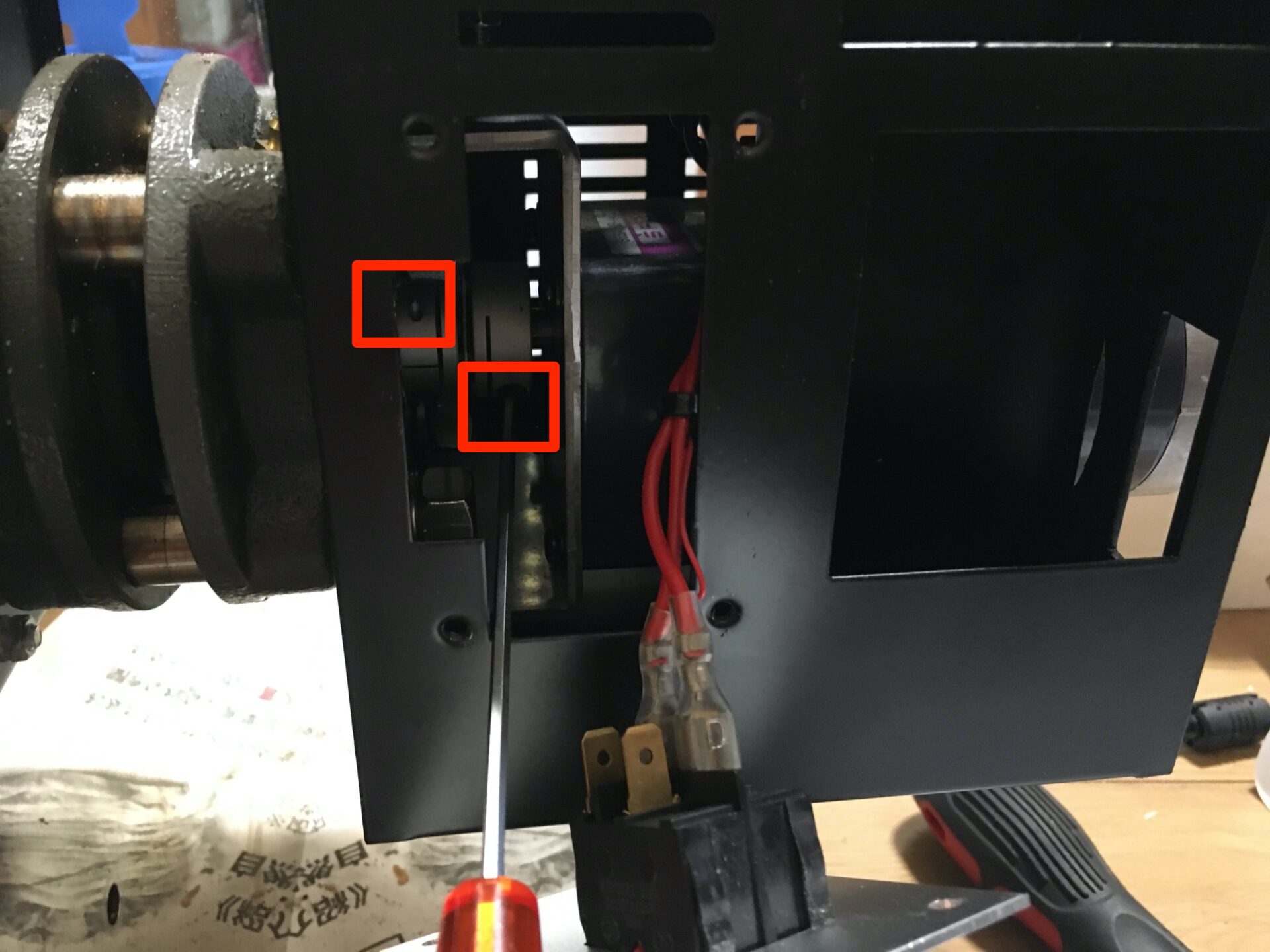 わたしはカップリングのボルトが緩くてモーターが作動しなくなったので、またネームプレートを外してカップリング調節をしました。