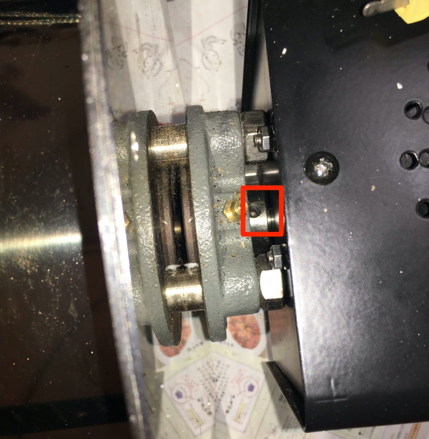 ネームプレートの中にはカップリングのボルトが2箇所あります。