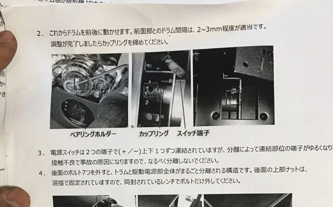 - 生豆落下は、ドラムの位置がずれていることが原因だったことがわかった。