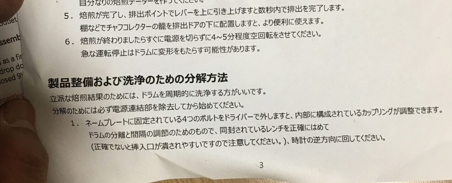 でも原因も分からず、やみくもに焙煎機を分解するのも怖かったので困っていました。