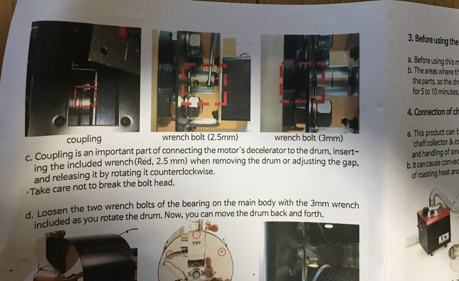 - 組立時、カップリングボルトが締まらないとドラムが動かないので注意