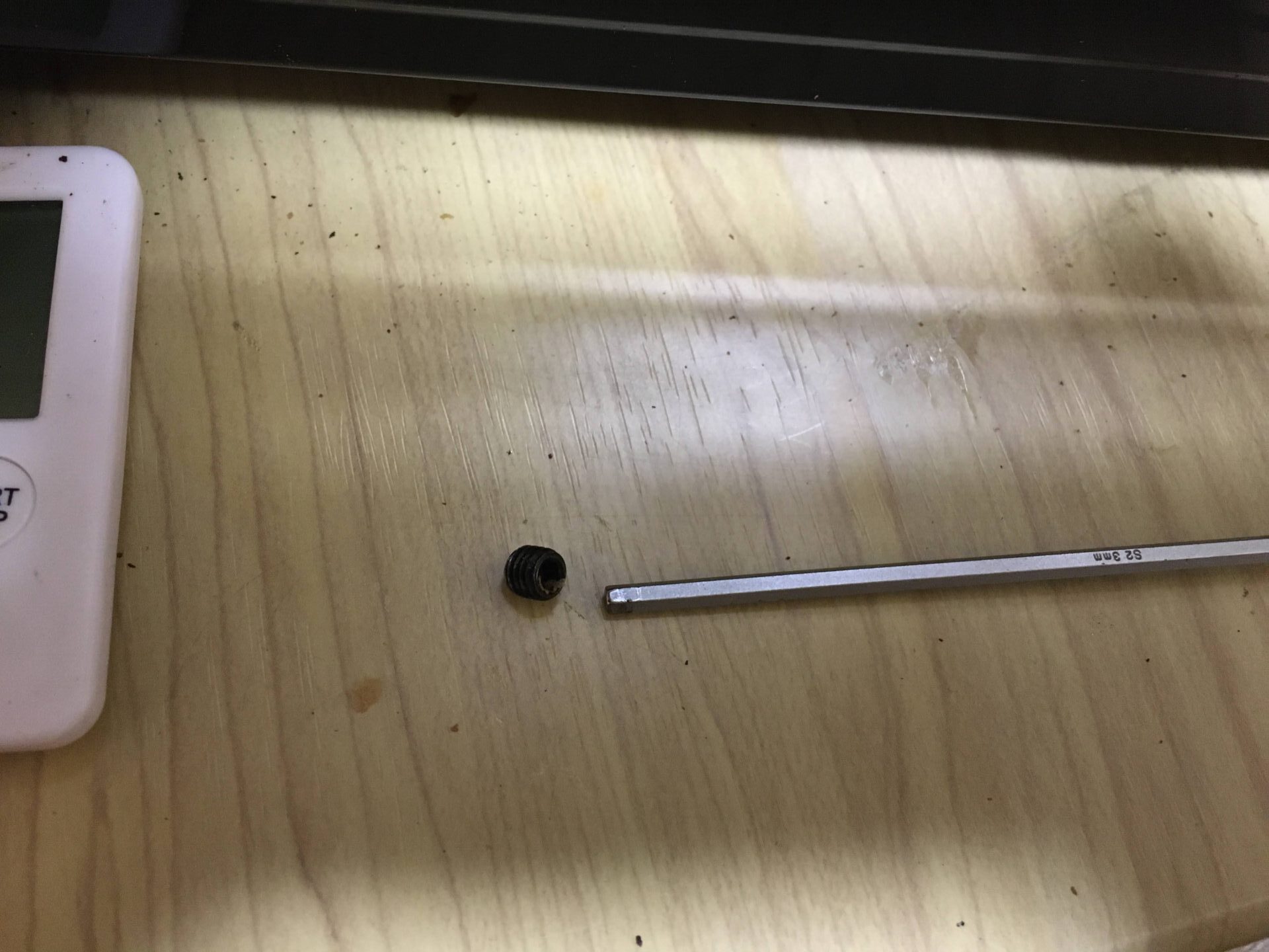 3mmのヘキサゴンレンチで反時計回りに回して外しましょう。