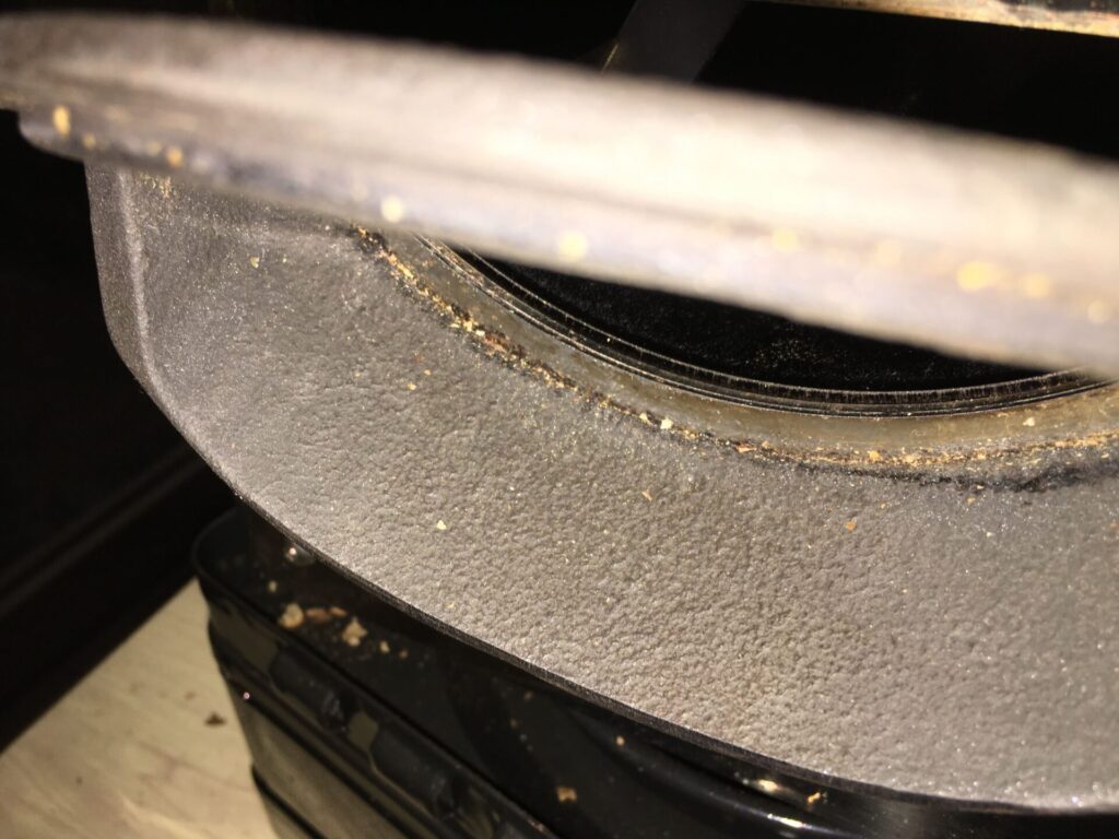 プチ改造(ドラム位置の調節)を行う理由は、焙煎中にドラムから生豆が相当量落ちてくるからです。