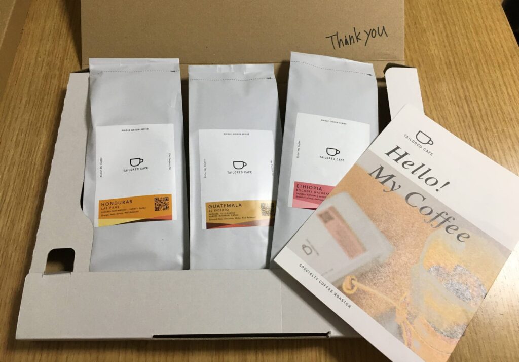 テイラードカフェの定期便は、15種類のスペシャリティコーヒーから、自分で選択した3種類がポストに届くサービスです。