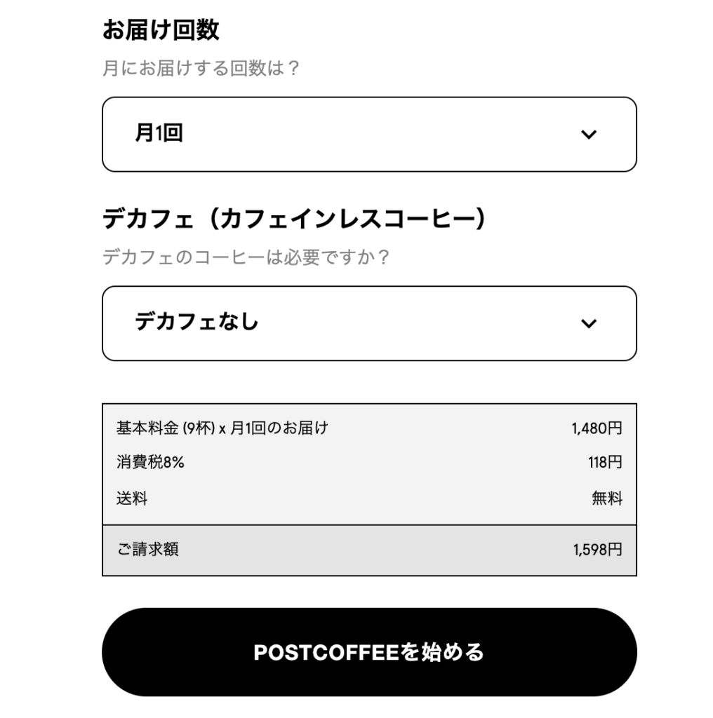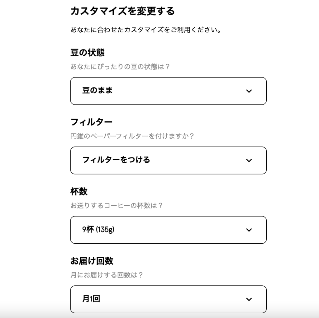 PostCoffeeとの違いは、好みのコーヒーを選択できることですね。