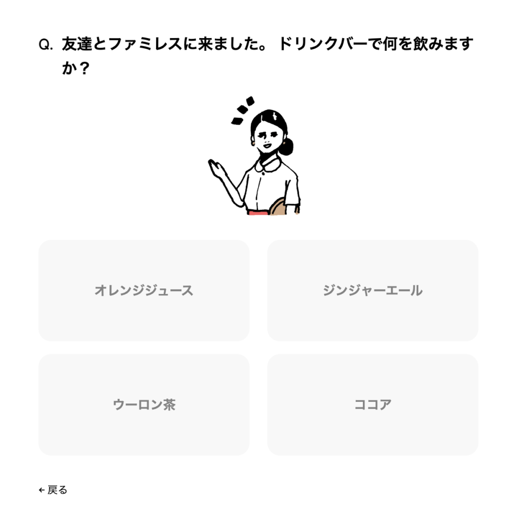 | 無料コーヒー診断 | 簡単な質問に答えるだけ | 診断結果が表示 | 冒険度も調整できる | オプションを選択 | 金額が表示 |